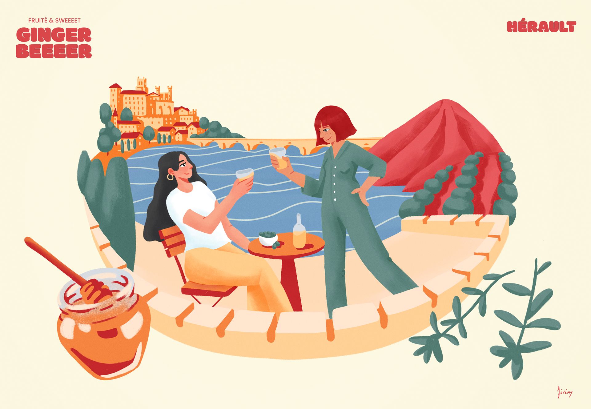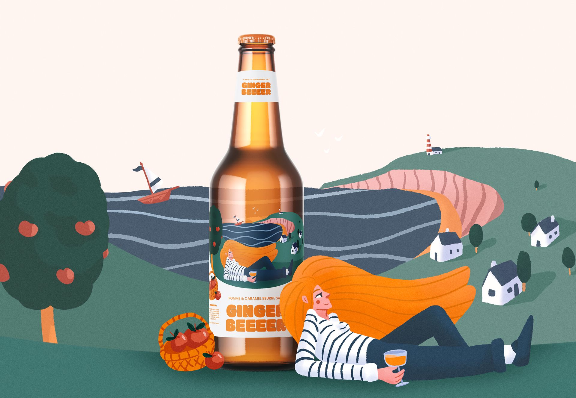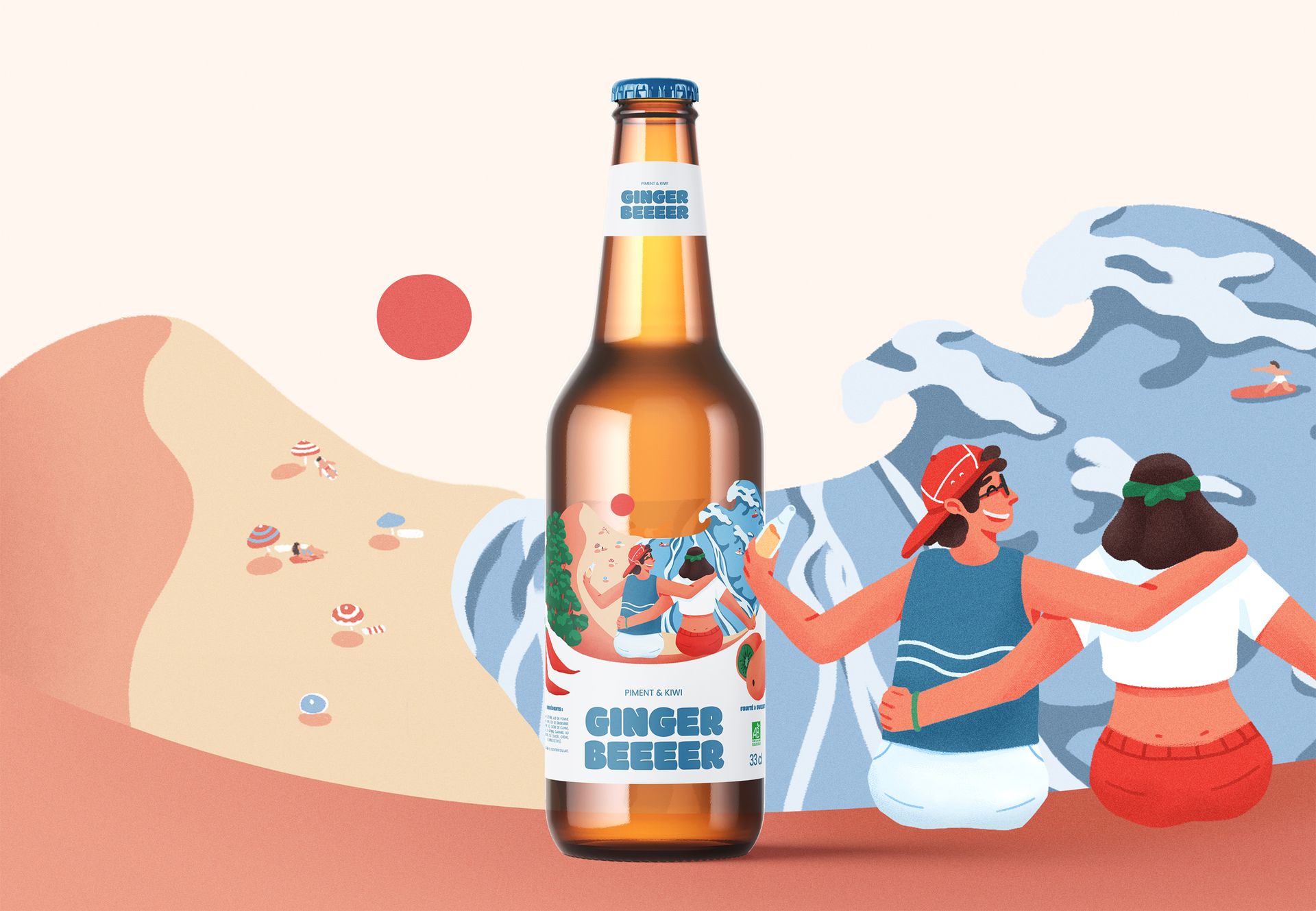 Cette série réunit trois illustrations conçues dans le cadre d’un projet d’étiquettes de ginger beer. Chaque visuel met en scène la rencontre entre le gingembre et des spécialités culinaire locales, imaginant ainsi des associations de saveurs originales et surprenantes.